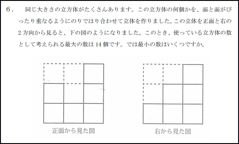 投影図や展開図を使った問題はよく出題されます。問題文から、正しくイメージが持てるような問題演習を行い、準備しておくと、混乱しないで正解できます。