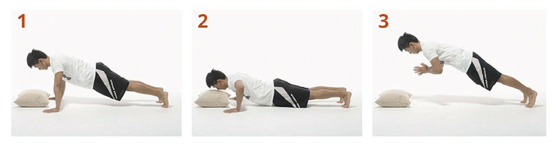 ②腕立て伏せ➡ジャンプ➡手をたたく(この流れを2回行う)