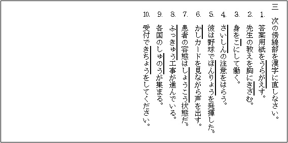 漢字の書き取りを問題例として挙げました。合格を目指すなら全問正解したいところです。ただし、よく見てみると、間違えやすい問題がそろっていることがわかります。 「きざむ」などは「刻」「核」などいかにもミスしそうですし、「きちょう」などはよく考えないとなんのことか判断ができません。文章を読んで、情景を思い出しながら意味を考えられているでしょうか?漢字練習一つとっても、ただやみくもに漢字を書くだけでは得点に結びつかないものです。 ぜひ、塾の先生に漢字の練習の仕方を教わってください。漢字練習一つでもいろいろなことがわかると思います。