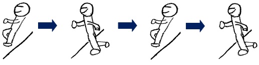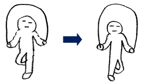 ①片足跳び(左右2回ずつを繰り返し10回行う)