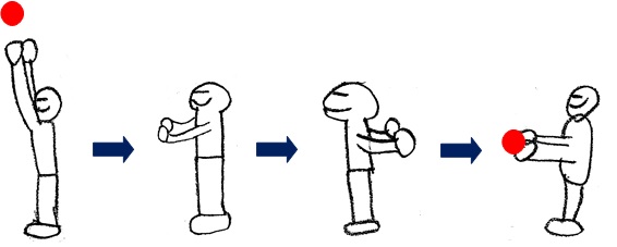 ②ボールを上に投げて、前と後ろで1回ずつ手を叩いてキャッチ×2回
