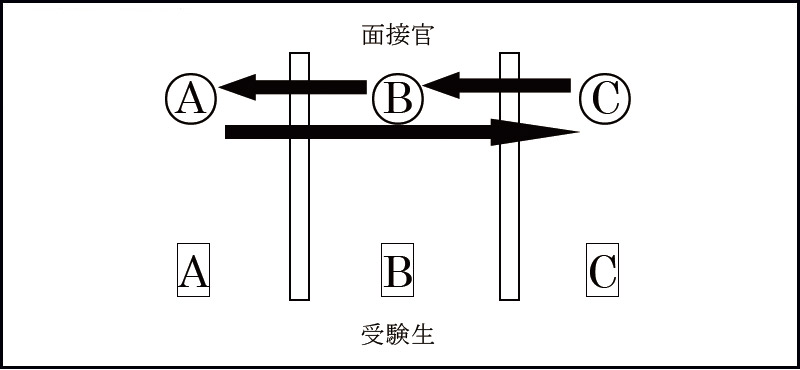 - 1対1の面接だが、1人ずつ面接官が移動して質問を行う形式 (質問は面接官1名が1問ずつ)