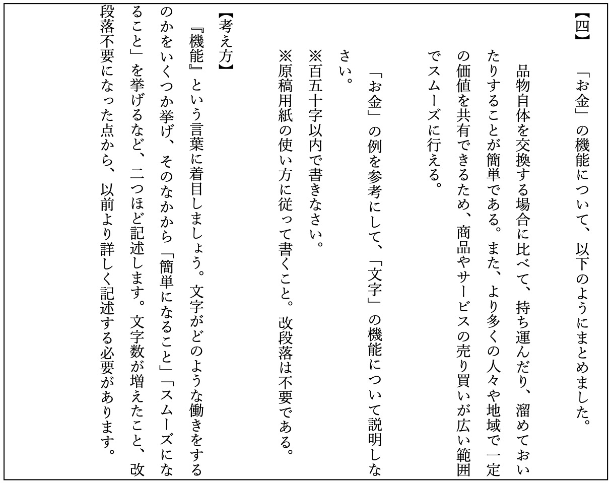 大問数4題、小問数24題と、例年通りの問題が出題されました。大問一の知識問題は、非常に解きやすいものであるのはここ数年続いています。慣用句などについてしっかりと対策する必要があります。大問2が短めの説明文で、大問3が長文の物語文というのもここ数年の傾向通りです。 とはいえ、文字数的にはかなり多いので読む速度が遅い受験生は大苦戦したことでしょう。大問四の作文では文字数が150文字であったことと改段落が不要であったことから、長めの作文となりました。特別な対策が必要な変更ではありませんでしたが、時間不足に陥った受験生がいるかもしれません。