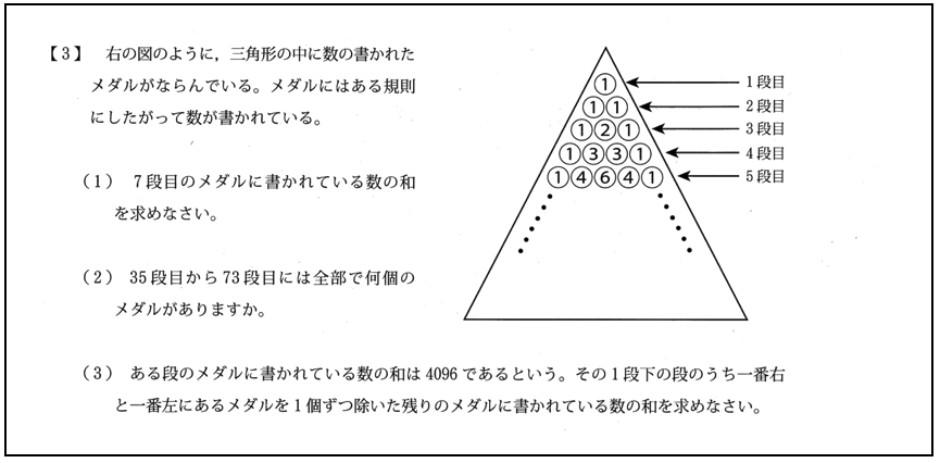 規則を見つけると、次に進めますが、見つからないと時間がかかってしまします。本校は規則性の問題が頻繁に出題されているので、徹底した問題演習で得意単元に押し上げておくと自信を持って本番に臨めます。