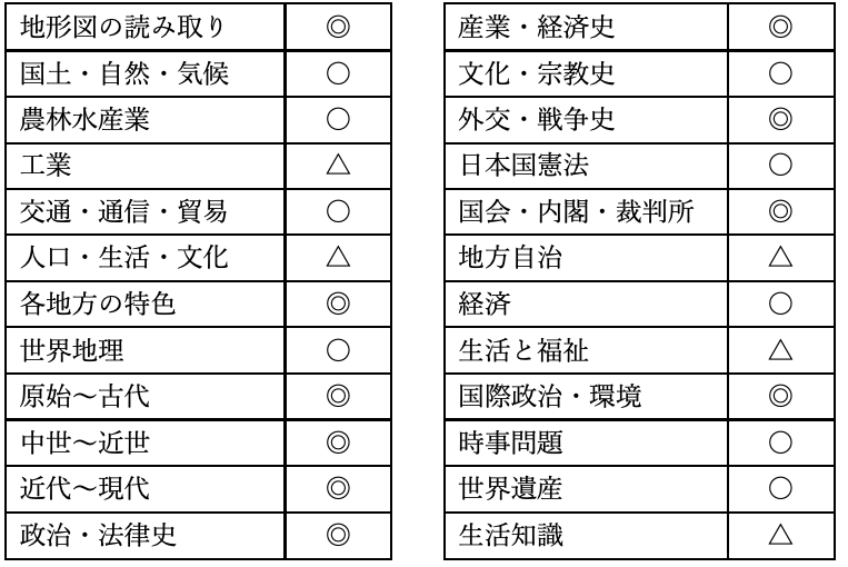 出題分野分析表