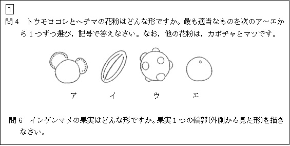 大問1は「植物のつくりと成長」ついての問題でした。植物に関する知識と対比実験の結果および設定について問われました。知識に関しては基本的なものだけではなく,植物に関する興味が差をつけたはずです。