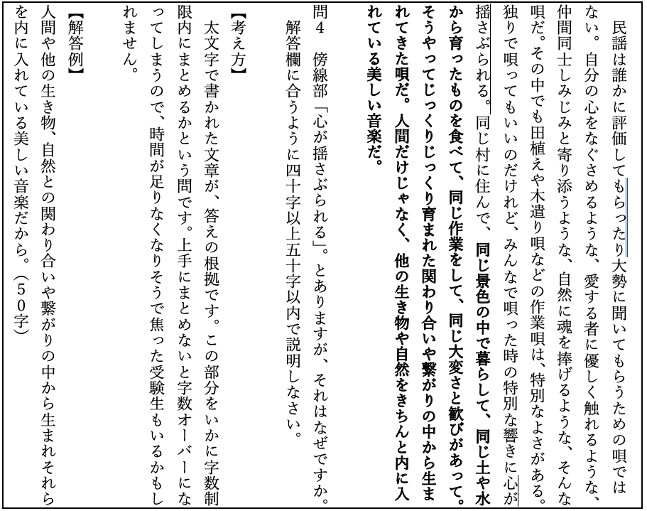 大問数2題・小問数16題と、例年通りの問題数が出題されました。文章量もほぼ平年並みです。問題の形式も、記号選択問題、書き抜きの問題、記述問題(30字~50字程度)と早稲田中学校の定番と言える問題構成でした。また、設問の難易度も易しい問題から高難度のものまで幅広く出題されています。