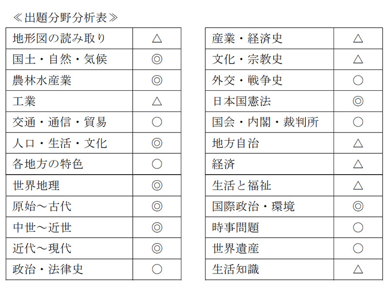 〔2〕は日本の歴史上の戦いや政変に関する問題が出題されました。例年は歴史の総合問題が大問の中心でしたが、昨年度からテーマ史による出題に変更してきました。今年度は、戦乱・戦争史を中心としたテーマ史でした。問題の難易度も地理と同様、基本から標準レベルですが、中には「筑紫国造磐井(つくしくにのみやつこいわい)の乱」や「承平(じょうへい)・天慶(てんぎょう)の乱」・「コシャマインの戦い」など、高校の日本史レベルの問題が出題されていますが、設問の内容を見ると、基本から標準レベルの問題ですので、さほど難しくはありません。〔3〕は日本国憲法と基本的人権に関する問題が出題されました。日本国憲法と基本的人権は、公民分野で最初に学習する単元ですので、苦手な場合は早期に復習しておく必要があります。 以上のことから、早稲田中学校の合格へのカギは、地理(グラフ・統計資料の読み取りも含む)・歴史・公民(時事問題も含む)を満遍なく対策をすることです。また、早稲田中学校の入試問題は、漢字で習ったものは必ず漢字指定で書かせる問題が多いです。普段の学習から、漢字で書く癖を身につけておきましょう。加えて、設問を細部まで読み解く力(例えば、ふさわしくないものや誤っているものを答えるのか、正しいものをすべて答えるのかなど)も見極めながら正確に処理する判断力を養う訓練を普段の学習から取り組むことをお勧めします。