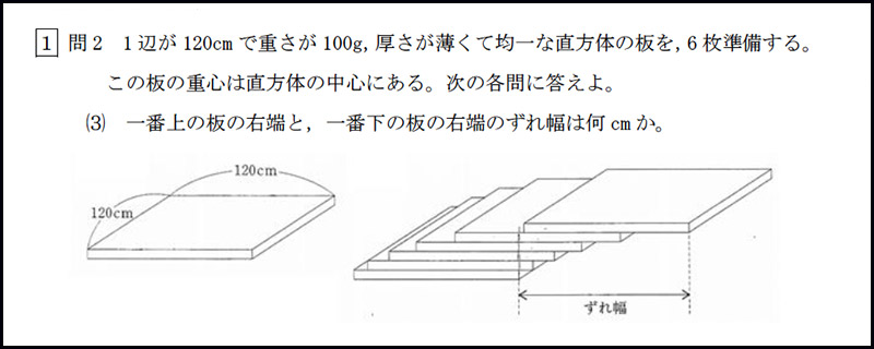 〔1〕は「てこのつり合い」。問1は標準的な問題。問2は仕組みをよく考え、じっくり取り組む必要があります。特に(3)は時間内に正解するにはかなりの計算力を要します。